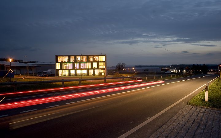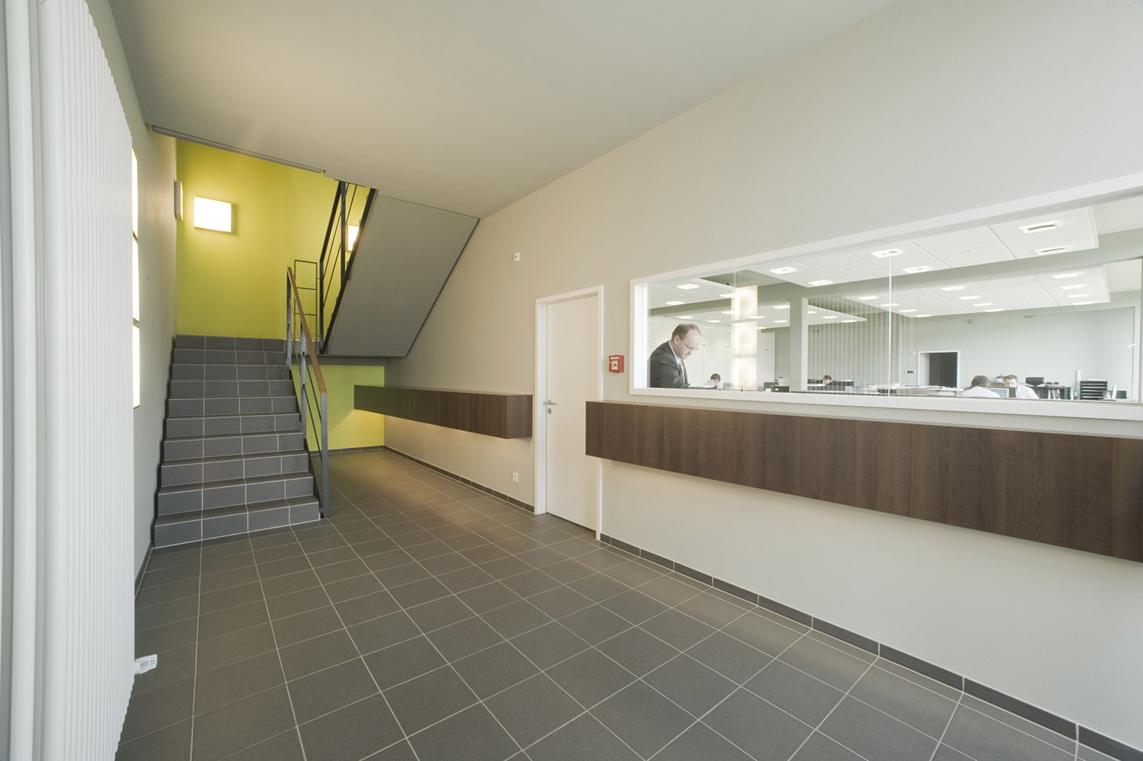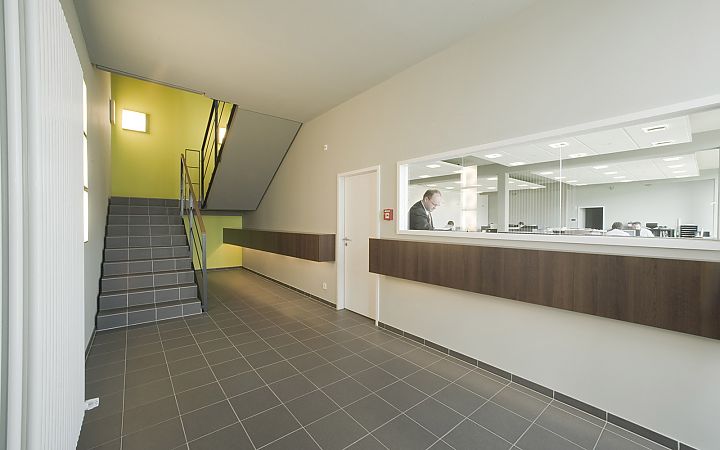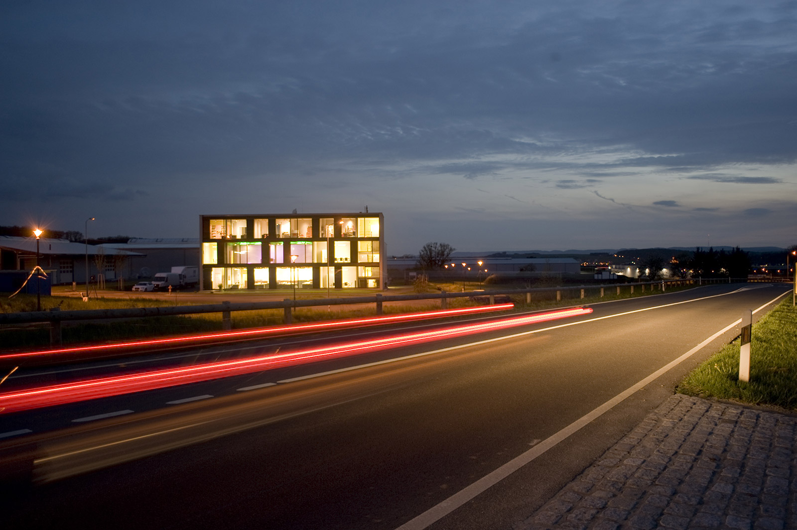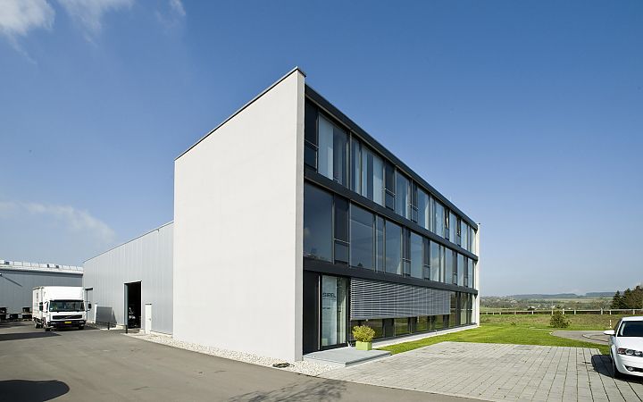 Der in solchen Themen erfahrene Bauherr formulierte das Raumprogramm äußerst vielseitig: Verwaltung, Technik, Ausstellung und Wohnung, angebunden ist dem ganzen eine Lagerhalle.