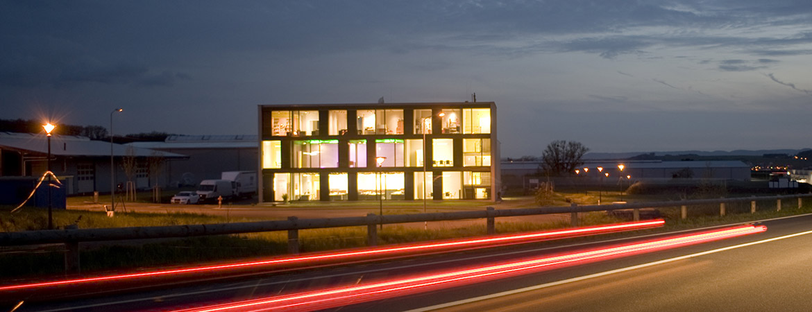 Die neue Niederlassung eines Unternehmens für Kabel- und Leuchtenvertrieb muss ihr gestalterisches Erscheinungsbild bewusst kultivieren. Umso mehr, wenn das profillose Gewerbeareal keine adäquate Kulisse für einen Kundenverkehr bietet.