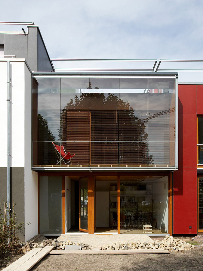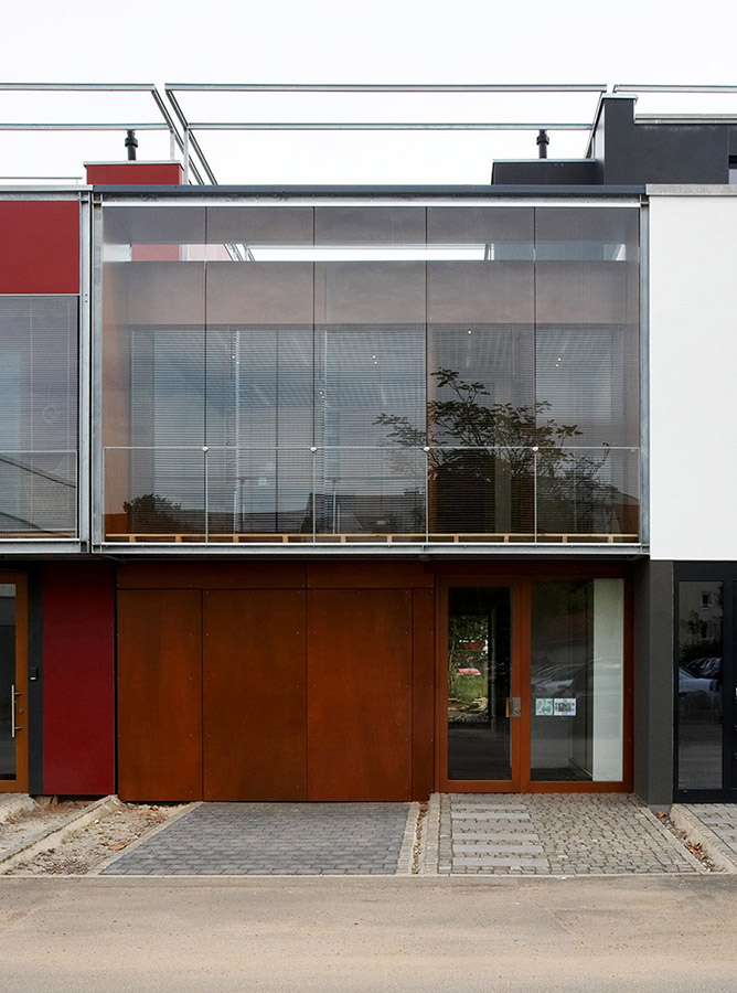 Unsere intensive Prüfung einer geeigneten Lage, Ausrichtung und Größe des Grundstücks, der Beschäftigung mit kleinen/großen Raum-, schweren/leichten Gebäudekonzepten in 2003 - 2004 führte zu einem kostengünstigen, ressourcenschonenden und zeitgemäßen Typ eines Reihenhauses. Das Haus kann ohne nennenswerte Veränderungen als Wohnhaus umgenutzt werden.