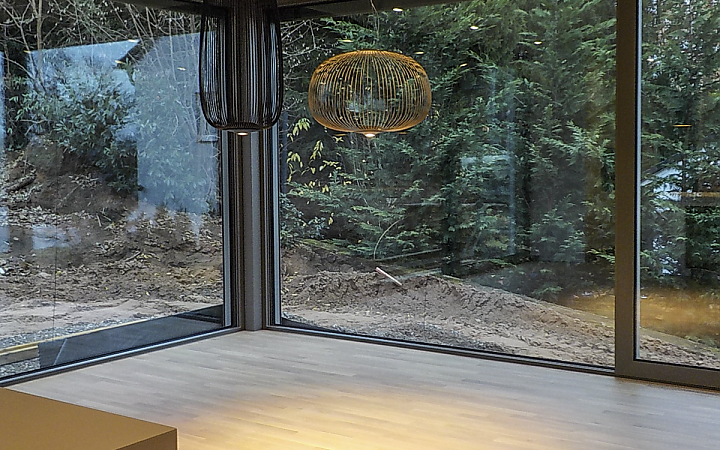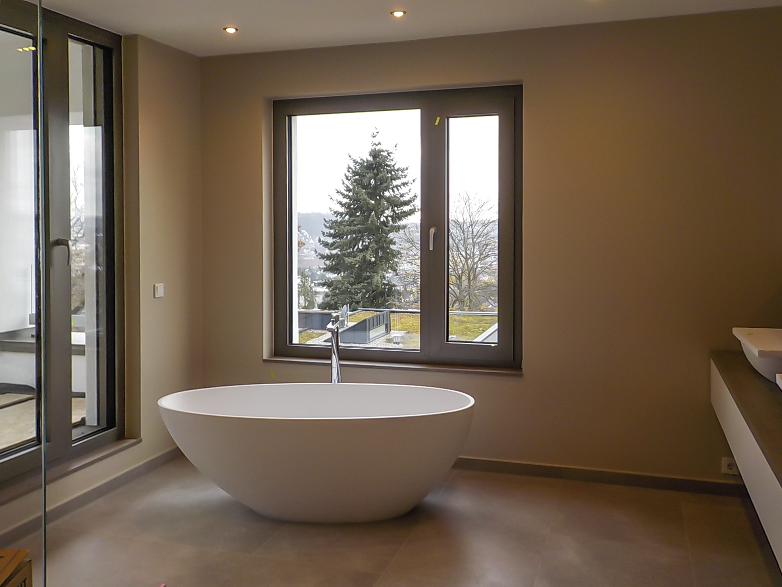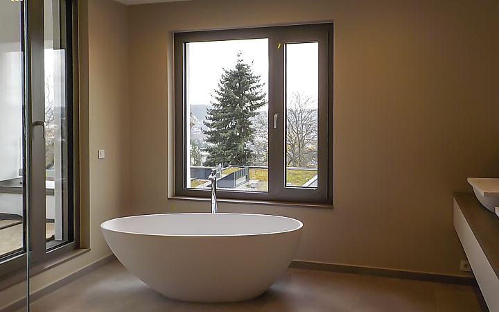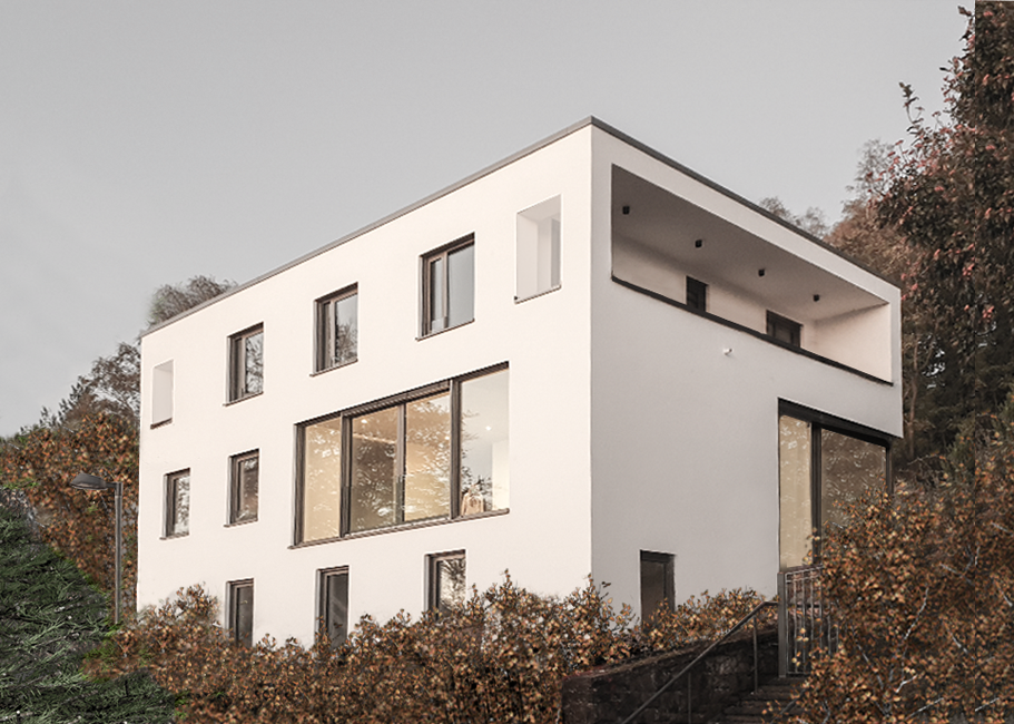 Am Rothenbühl entstand ein großes Wohnhaus an der Stelle eines bisherigen Wohnhauses. Garage und Untergeschoss liegen auf Straßenniveau, sodass die beiden Wohnebenen einen weiten Blick über die Saarbrücker Innenstadt bieten.