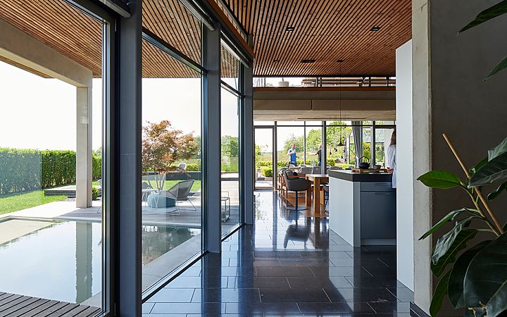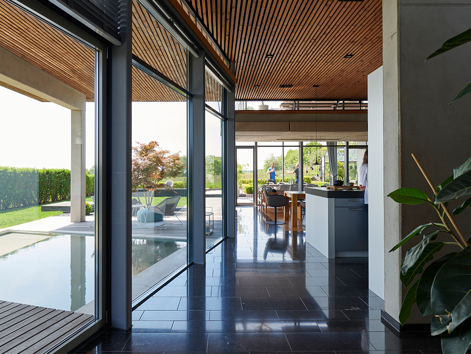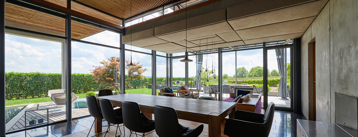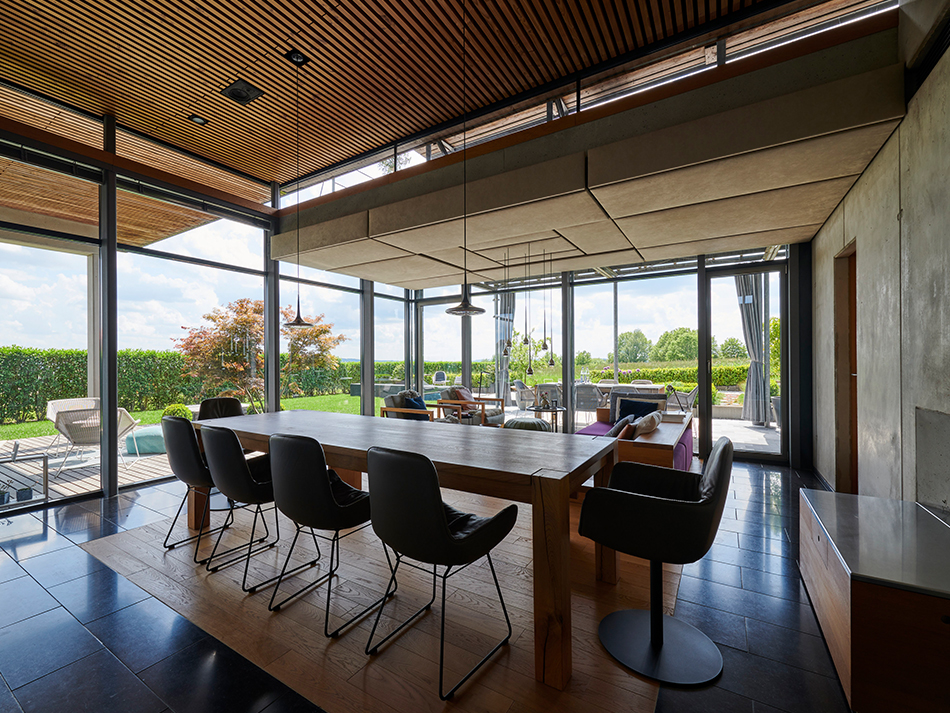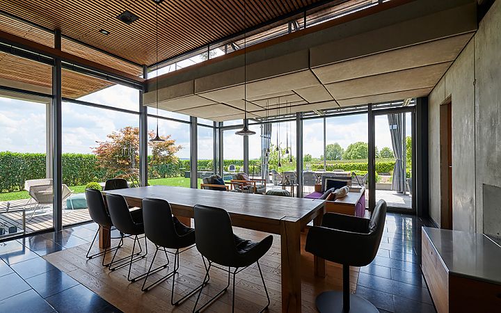 Das selbstbewusste Gebäude in regionaltypischer Konstruktionsart setzt sich von einer bekannten Hochwälder-Bauweise durch seinen landschaftsgerechten Entwurf ab.